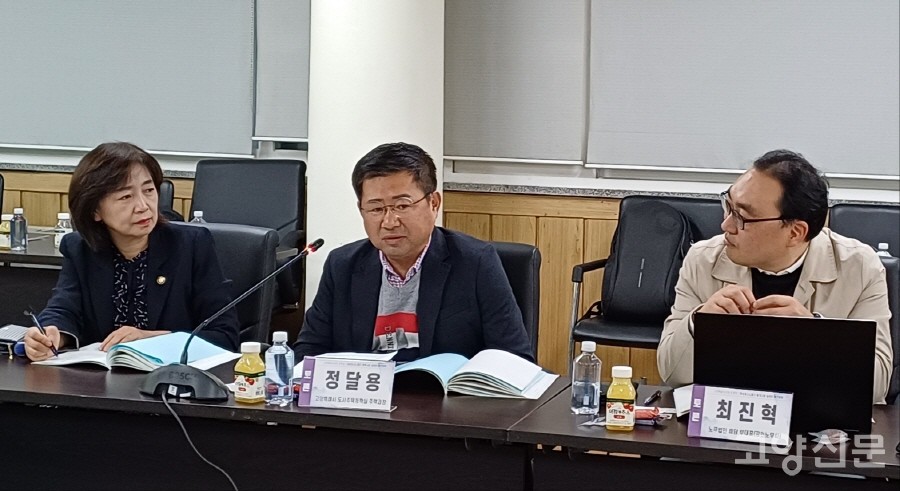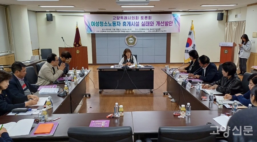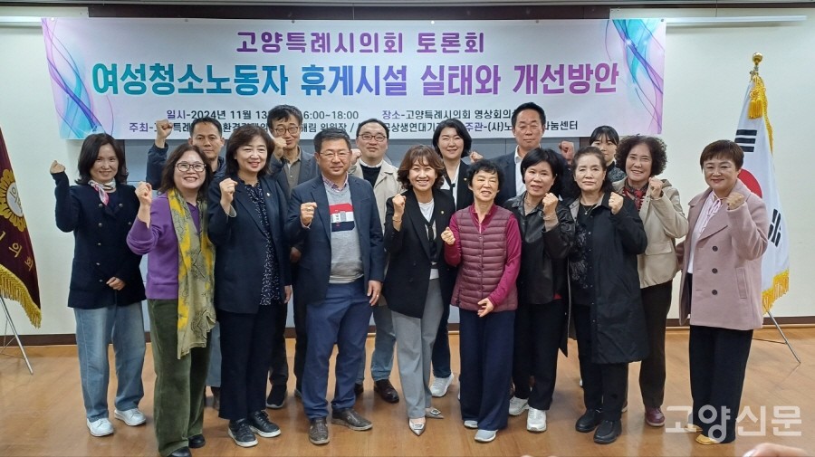 [고양신문] (사)노동복지나눔센터(이사장 김주실)가 주관한 ‘여성청소노동자 휴게시설 실태와 개선 방안’ 토론회가 13일 고양시의회 영상회의실에서 열렸다. (재)공공상생연대기금과 이해림 고양시의회 환경경제위원장의 공동주최로 진행된 이날 토론회에는 노동분야 전문가, 고양시의회, 지역활동가, 청소노동 당사자들이 한자리에 모여 여성청소노동자들에게 더 나은 휴식환경을 제공하기 위한 진지한 논의를 나눴다.