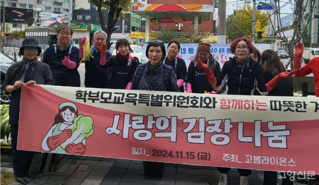 [고양신문] 고양시학부모교육 특별위원회(회장 김덕심)와 고봉라이온스(회장 이해순)는 지난 15일 김장철을 맞아 지역사회의 어려운 이웃들에게 온정을 전하는 대규모 김장 봉사활동을 진행했다. 이번 김장 봉사활동에는 고봉라이온스클럽 이해순 회장을 비롯한 다수의 회원들이 참여했으며, 총 1000포기의 김장김치를 담가 복지관과 독거노인들에게 전달했다.