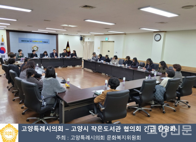 시의회 문화복지위원회는 지난 14일 시의회 4층 영상회의실에서 고양시 작은도서관협의회 관계자들과 긴급 간담회를 가졌다. 이날 간담회는 김미수 문화복지위원회 위원장을 비롯해 권선영·조현숙 문화복지위원회 위원과 상반기 문화복지위원회를 맡았던 이종덕·신인선·최규진 위원 등이 함께 했으며 작은도서관 운영 관계자 20여 명도 참석했다.