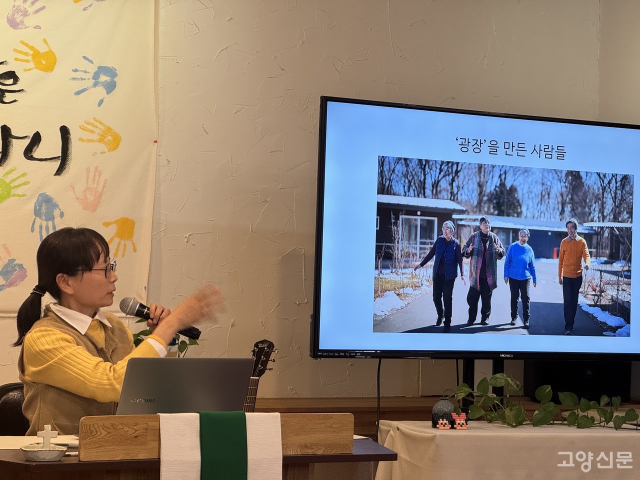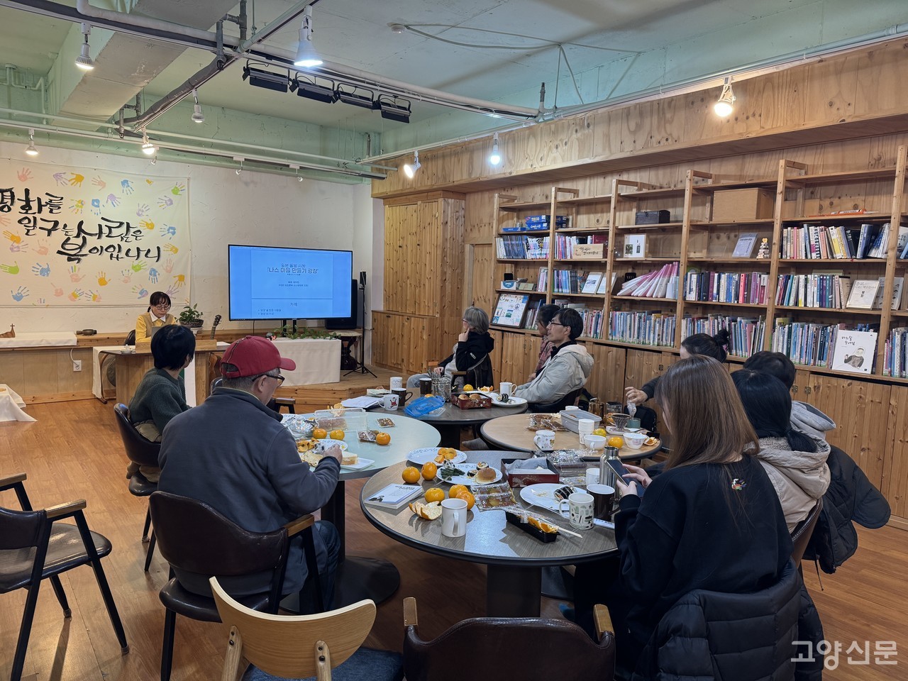 [고양신문] 고양시 돌봄공동체 ‘서로돌봄’은 지난 20일 동녘교회(덕양구 토당동)에서 일본 고령자 공동체 마을 ‘나스 마을만들기 광장’ 방문 후기를 공유하는 자리를 마련했다. 포트락 파티 형태로 진행된 이날 자리에는 지역 내에서 새로운 돌봄공동체를 꿈꾸는 다양한 시민들이 모여 일본 사례를 듣고 서로의 고민을 나눴다.