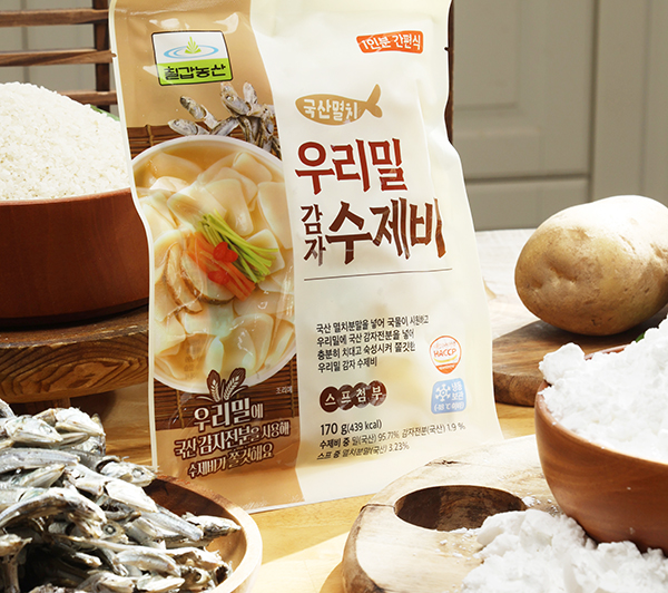 칠갑농산의 신제품 우리밀감자수제비는 1인분으로 포장된 수제비로, 간편하고 신선하게 조리하고 보관도 할 수 있다. 또 우리 밀, 국산 감자전분으로 특허받은 성형구에서 수제비를 뽑아 손으로 뜯은 듯한 쫄깃한 식감이 강점이다. 국물 또한 국산 멸치로 맛을 내 국물 맛이 깊다.