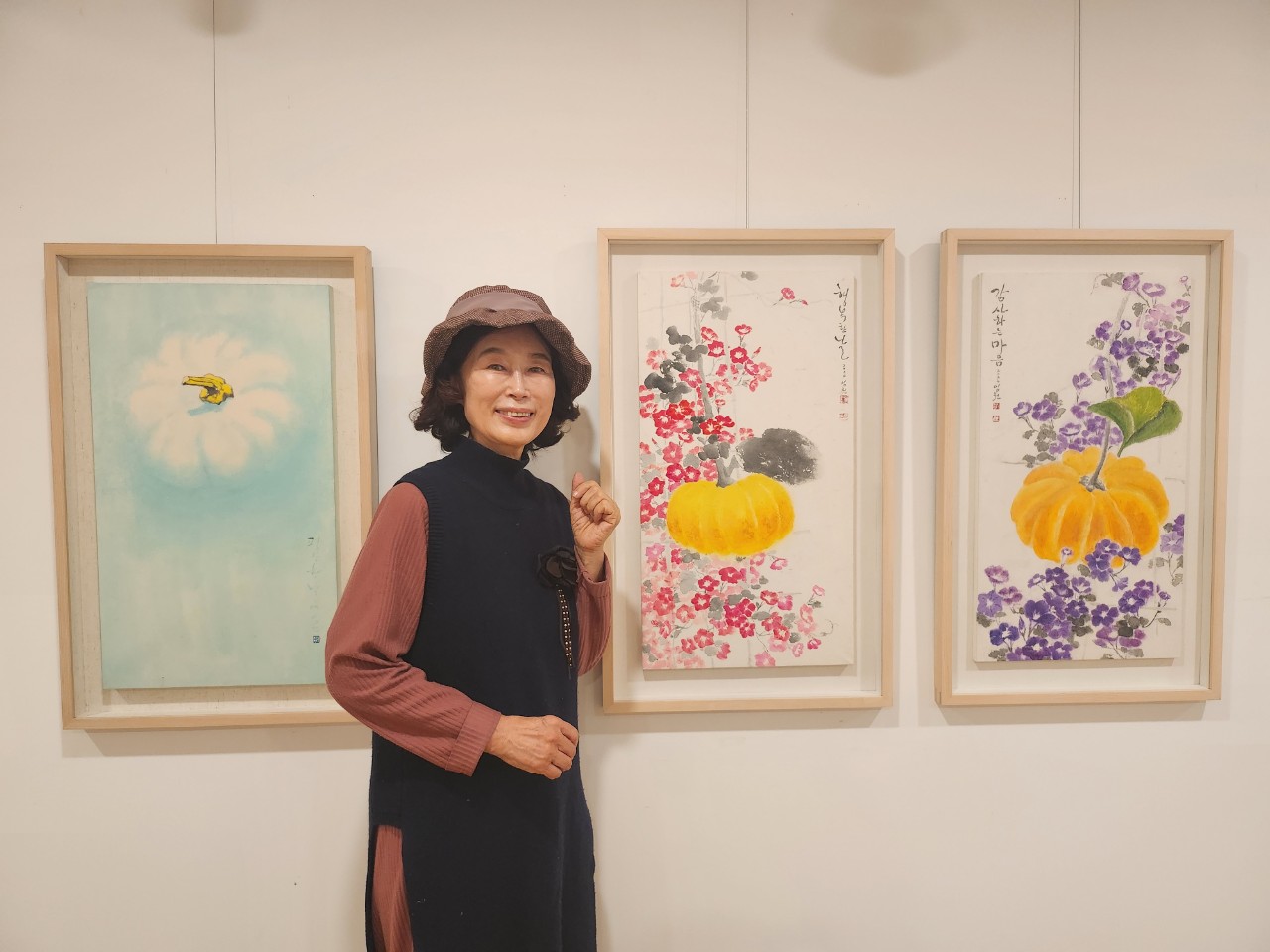 한지의 매끄럽고 섬세한 질감에 호박을 그리는 과정에서 나타나는 자연의 흐름은 동양화에서 중요하게 여기는 여백의 미와 자연의 무한성을 나타낸다. 이 작가는 자연의 섬세함과 그 안에 담긴 의미를 깊이 있게 표현하며 감각적인 색채와 선을 통해 자연과 인간의 관계를 탐구한다.