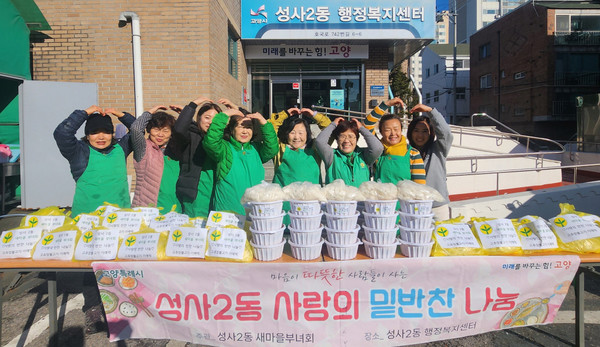 [고양신문] 덕양구 성사2동 새마을부녀회는 지난 18일 성사2동 행정복지센터 앞에서 취약계층에게 음식을 전달하는 ‘이웃 愛 먹거리 나눔 봉사’를 진행했다.