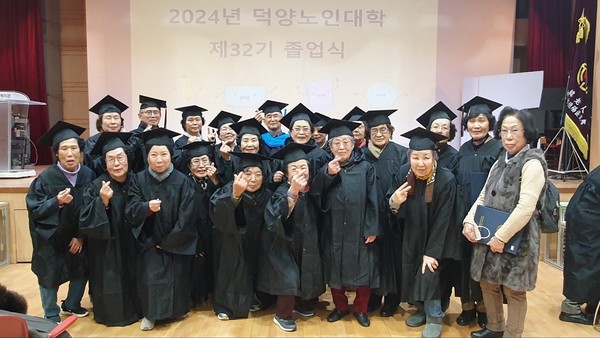 [고양신문] (사) 대한노인회 덕양구지회(지회장 장도영)는 지난 18일 덕양노인복지관 대강당에서 덕양지회 부설 노인대학(학장 유환익) 제32기 졸업식을 개최했다. 이날 이동환 고양시장, 임직원, 졸업생 등 310여 명이 참석해 색소폰 공연으로 시작한 졸업식을 지켜보고 축하했다.