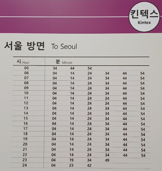 ▼킨텍스역 서울역 방향 열차시간표.
