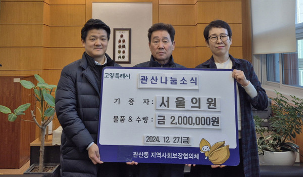 [고양신문] 덕양구 관산동에 소재한 서울의원은 지난 27일 이웃 돕기 성금 200만원을 관산동에 기부했다.