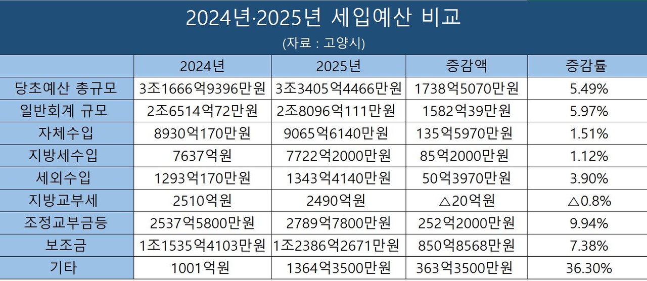 고양시 관계자는 “2024년 기업실적 악화 등으로 국세수입이 저조함에 따라 단기적으로 이전재원의 감소 우려가 있다”고 전했다.