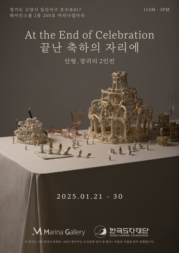[고양신문] 일산서구 대화동에 자리한 마리나 갤러리에서 특별한 도자 전시가 열린다. (재)도자문화재단의 <2024 찾아가는 도자문화 전시 및 행사> 사업 지원으로 진행되는 안형·장귀리 2인전 <끝난 축하의 자리에(At the End of Celebration)>가 설 연휴를 포함해 1월 21일부터 30일까지 관람객을 맞이한다.