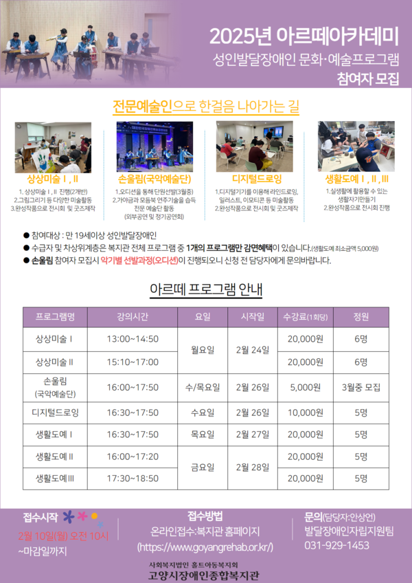 참여자는 오는 2월 10일부터 고양시장애인종합복지관 홈페이지를 통해 온라인 선착순 접수한다.