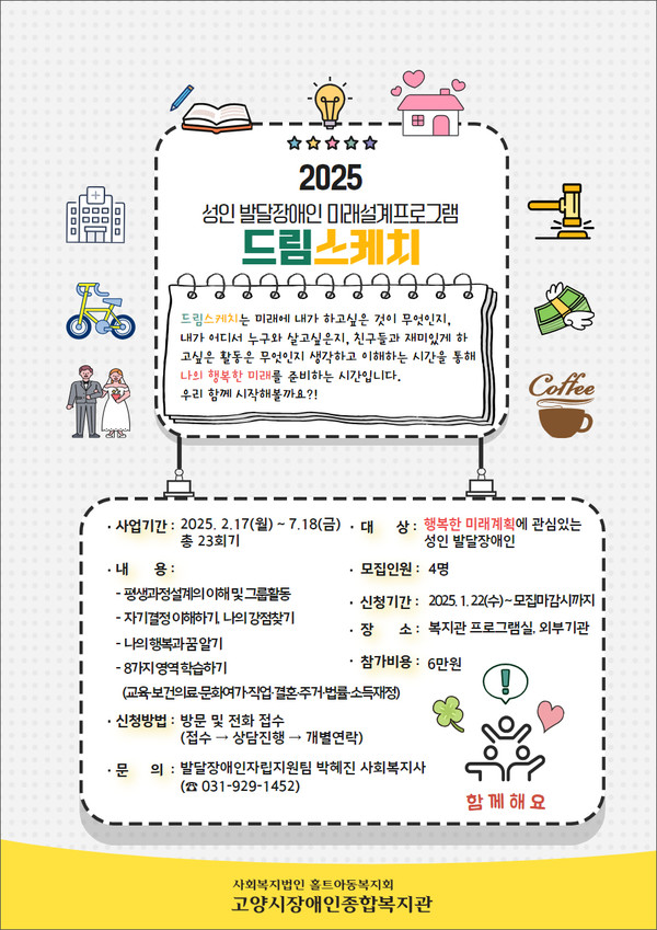 [고양신문] 고양시장애인종합복지관(운영법인 홀트아동복지회)은 성인 발달장애인을 위한 독립생활 및 자립지원사업인 ‘이루다꿈!’ 참여자를 모집한다.