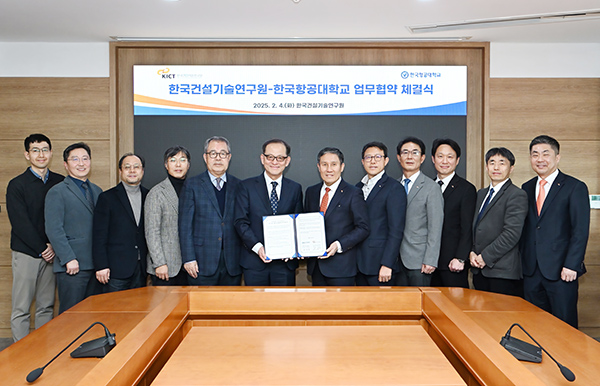 [고양신문] 항공우주 종합대학인 한국항공대학교(이하 한국항공대)와 건설‧국토 관리 분야 정부출연 연구기관인 한국건설기술연구원(이하 건기연)이 4일 건기연 본원에서 업무협약(MOU)을 체결하고 우주 항공산업 생태계 구축을 위해 상호협력하기로 합의했다. 이날 협약식에는 한국항공대 허희영 총장과 건기연 박선규 원장을 비롯한 양 기관 관계자가 참석했다.