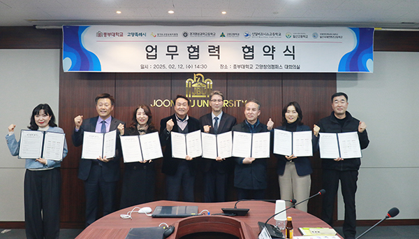 [고양신문] 중부대학교(총장 이정열)는 12일 고양창의캠퍼스 세종관 대회의실에서 고양특례시, 경기도고양교육지원청, 고양시 5개 특성화 고등학교(경기영상과학고등학교, 고양고등학교, 신일비즈니스고등학교, 일산고등학교, 일산국제컨벤션고등학교)와 교육발전특구 시범사업의 성공적인 운영을 위한 업무협약을 체결했다.