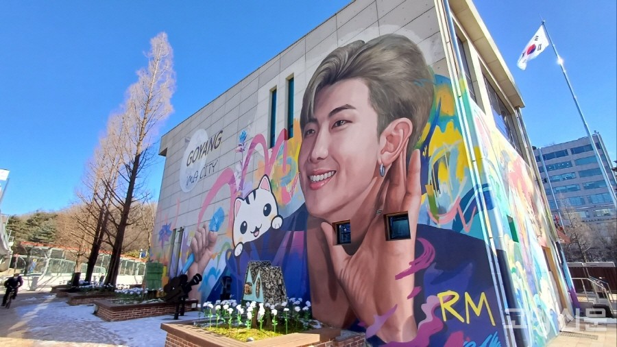 2021년 9월에는 일산문화광장 전면에 세워진 고양관광정보센터 벽면에 멋진 포토존이 조성됐다. 바로 BTS의 리더 RM(랩 몬스터)이 마이크를 들고 있는 장면인데, 당시 RM의 생일에 맞춰 포토존이 공개돼 팬들의 뜨거운 관심을 받기도 했다. 어깨에는 고양고양이도 귀엽게 얹혀져 있다.