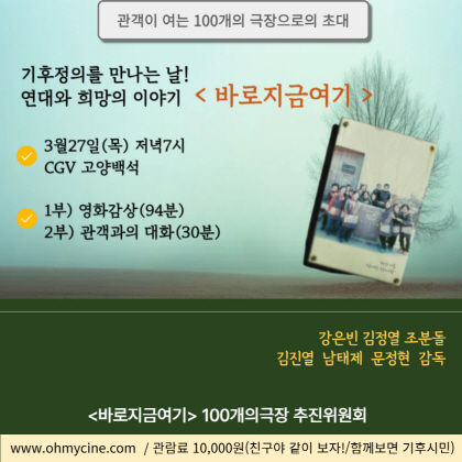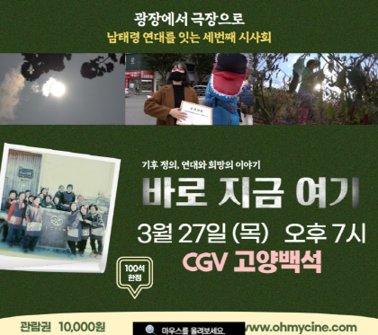 고양의 관객들을 만나게 될 <바로 지금 여기>는 석탄발전소 반대 운동 과정에서 만난 청년 은빈과 노년의 활동가 이야기를 중심으로 우리 사회 민중들이 겪는 기후재난의 현실을 생생히 그려낸 다큐멘터리 작품이다.