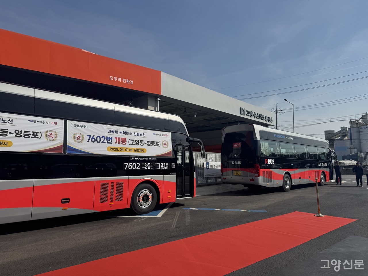고양시는 지난 31일 덕양구 대자동 수소충전소에서 7602번 노선 개통을 자축하는 개통식을 가졌다. 이날 개통식에는 이동환 시장과 김운남 시의회 의장, 한준호 고양을 국회의원을 비롯해 도의원, 시의원, 직능단체장, 주민 등이 참석했다.