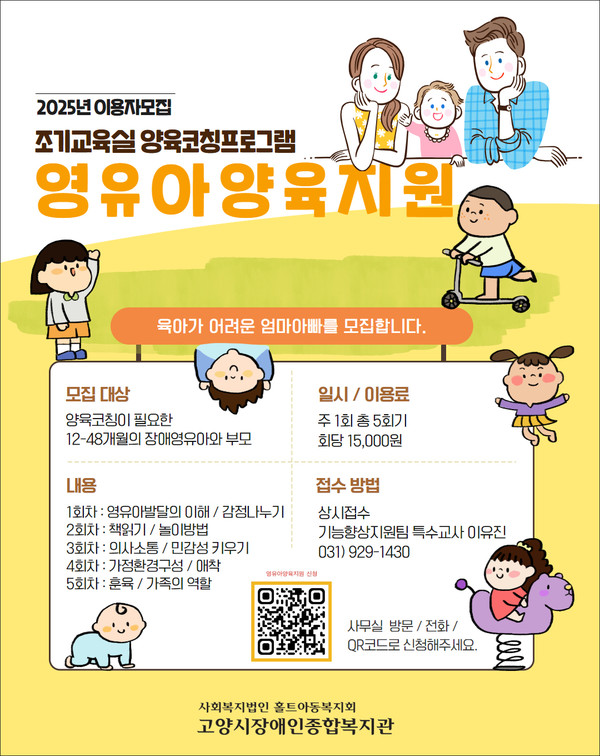 고양시장애인종합복지관의 한 관계자는 "부모들이 아이를 양육하며 겪는 어려움을 덜고, 보다 효과적인 양육 방법을 배울 수 있도록 돕는 것이 이번 프로그램의 목표다. 많은 부모님이 참여해 유익한 시간을 보내시길 바란다”라고 전했다.