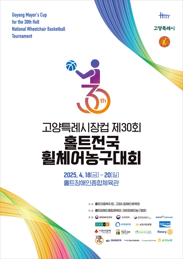 [고양신문] 홀트아동복지회(회장 신미숙)는 오는 4월 18일부터 20일까지 3일간 홀트장애인종합체육관(관장 김재현)에서 ‘고양특례시장컵 제30회 홀트전국휠체어농구대회’를 개최한다.