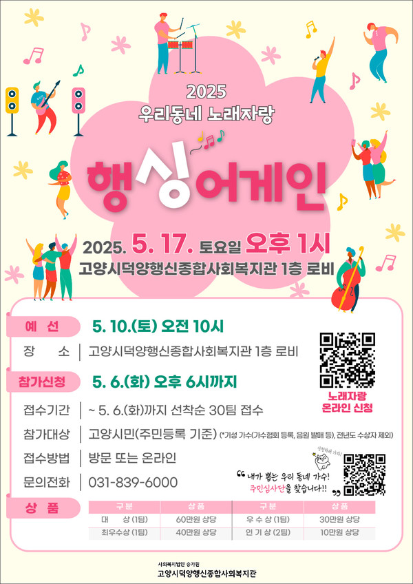 덕양행신종합사회복지관 관계자는 “개관 8주년을 기념해 마련한 이번 노래자랑이 이웃과 소통하고 화합하는 지역 축제가 되길 바란다. 노래, 춤, 퍼포먼스 등 다양한 끼를 가진 고양시민의 많은 참여를 기대한다”라고 전했다.