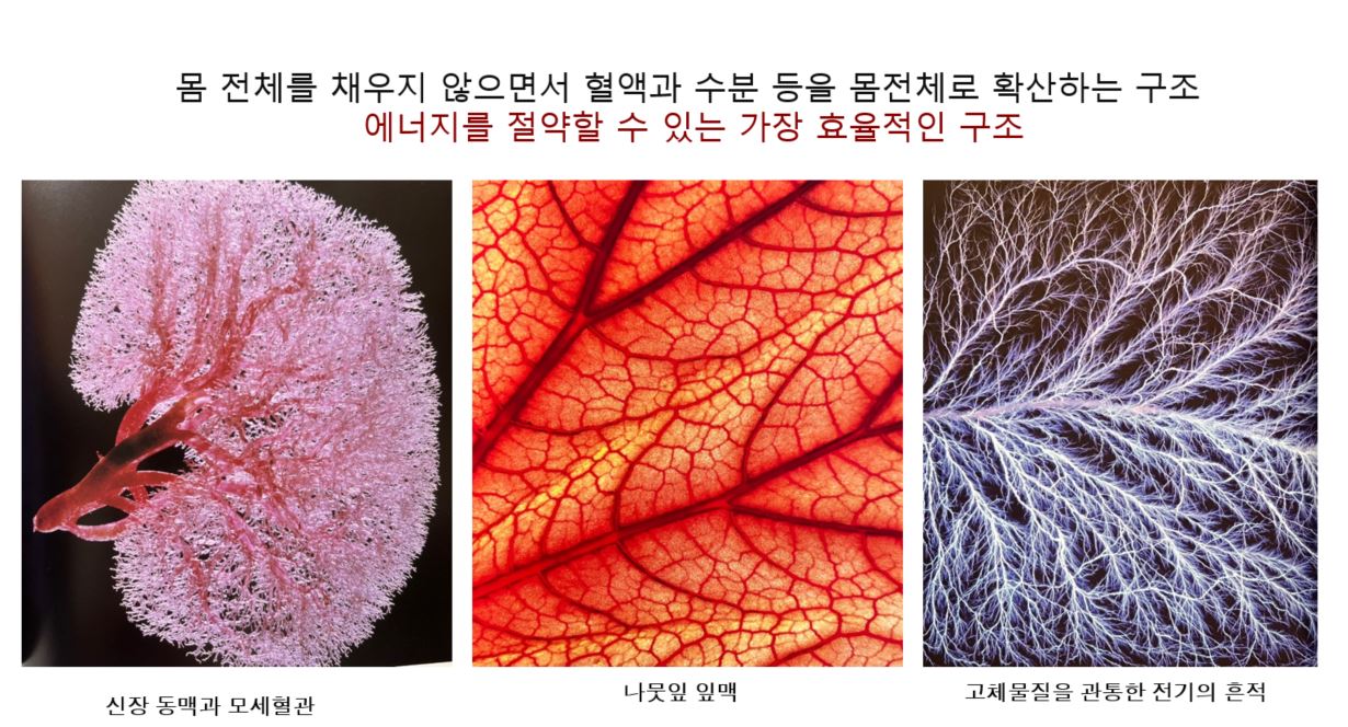 우리가 자연의 일부라는 것은 자연의 구조에서도 확인할 수 있다. 나뭇가지와 우리 몸 폐속 기관지 가지의 모양이 매우 흡사하고, 나뭇잎의 섬세한 잎맥이 우리 몸속 신장 동맥과 모세혈관과 닮아있다. 고체물질을 관통하는 전기의 흔적 역시 같은 모양이다. 이는 자연의 모든 구조가 에너지를 절약할 수 있는 가장 효율적인 모양으로 설계됐기 때문이다.