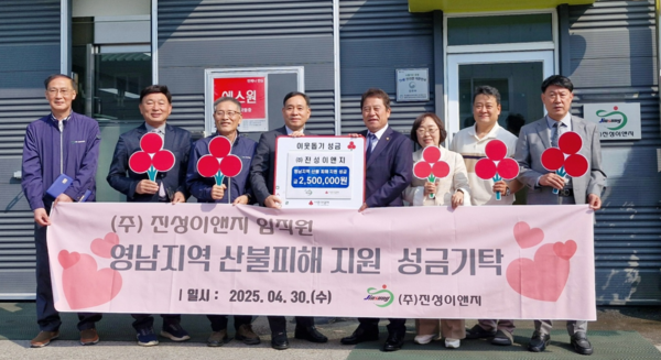 (주)진성이앤지는 건축물의 장수명화를 위한 도색, 방수 등 시설물유지보수를 전문으로 하는 기업으로, 이번 성금 모금은 임직원들의 자발적인 참여로 이뤄졌다. 직원들은 영남 지역사회가 겪고 있는 어려움을 함께 나누고자 뜻을 모았으며, 회사도 직원들의 성원에 적극적으로 동참했다.