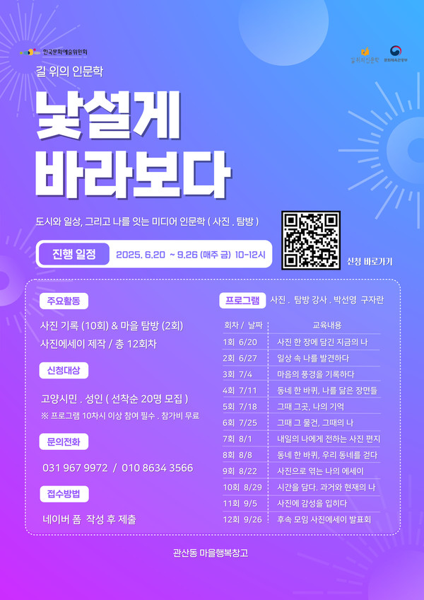 특히 이 사업은 이주민의 시선으로 고양시의 공간과 삶을 기록하는 독창적 접근이 돋보이며, 지역성과 다양성이 어우러진 문화 콘텐츠로 주목받고 있다. 2025년 프로그램은 오는 6월 20일부터 9월 26일까지 총 12회에 걸쳐 매주 금요일 오전 10시부터 낮 12시까지 진행된다.