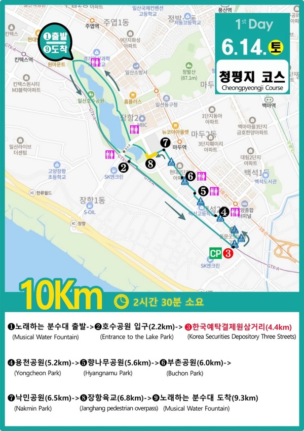이번 고양국제걷기대회 사전 접수자에게는 T셔츠와 배번호, 완보증, 행운권 등이 제공된다. 사전접수 마감은 6월 12일(목)까지며, 행사 당일 현장 접수도 가능하다. 고양국제걷기대회 사전접수는 QR코드로 접속해서 바로 신청이 가능하다.