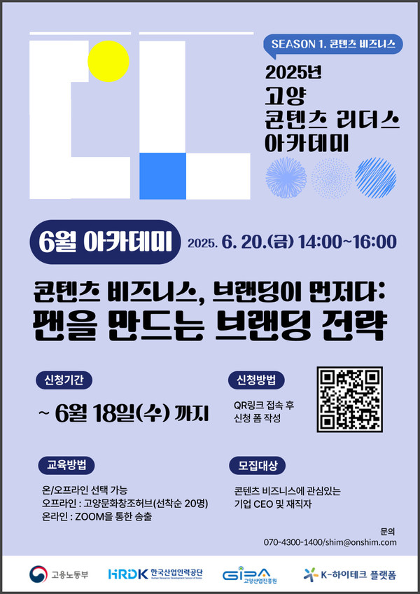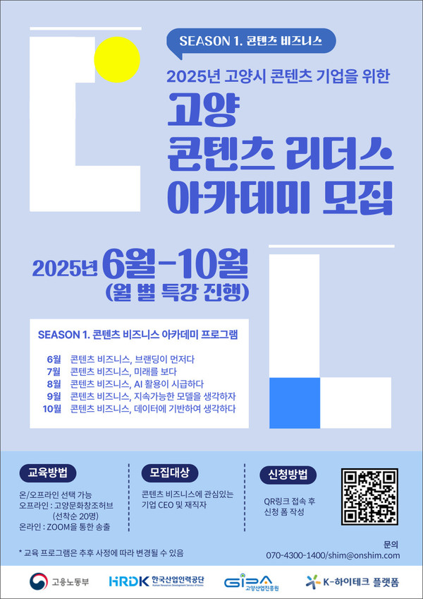 고양 콘텐츠 리더스 아카데미의 세부 일정과 내용은 고양산업진흥원 누리집과 포스터에서 확인할 수 있다.