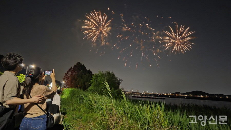 14일 밤, 축제의 또 다른 하이라이트인 ‘드론 불꽃 아트쇼’가 펼쳐졌다. 850대 드론이 창공 위로 떠올라 임진왜란부터 광복까지의 역사적 장면을 형상화했다. 행주대첩, 윤동주 시인과 유관순 열사, 안중근 의사, 김좌진 장군의 독립운동 순간들, 그리고 태극기와 미래를 바꾸는 힘 고양의 메시지가 밤하늘을 수놓았다. 시원한 강바람에도 흔들리지 않는 드론의 정교한 움직임이 만든 장관은, 단순한 퍼포먼스를 넘어 ‘기억해야 할 역사’의 메시지를 품고 있었다. 이어진 수상 불꽃놀이는 행주산성 아래에서 터지는 웅장한 소리로 축제의 밤을 환히 밝혔다.