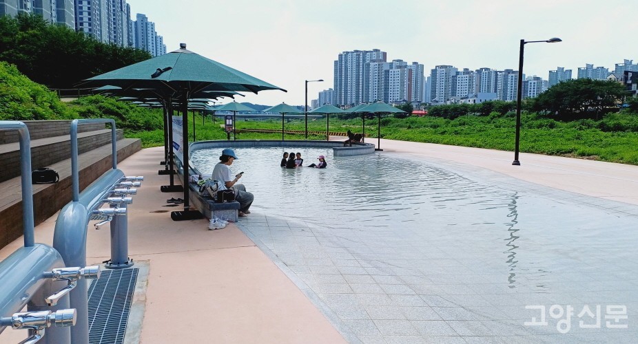 [고양신문] 이달 초 공릉천 발물놀이터가 개장한 데 이어 창릉천에도 간이 물놀이형 수경시설인 ‘발물놀이터’가 운영되고 있다.