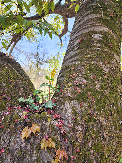 식물의 세계도 예외는 아닙니다. 그냥 햇빛 잘 받고 비나 적당하게 와주면 식물은 어디서나 조화롭게 자랄 것 같지만 이들 역시 치열한 경쟁 속에 살아갑니다. 많은 종류의 식물이 살아가는 숲에서는 햇빛이 중요한 자원입니다. 많거나 적거나 빛을 못 받으면 살아갈 수 없고, 성장이 어렵기 때문이죠. 큰 나무 아래 자라는 작은 풀은 숲이 우거지기 전에 꽃을 피우고 열매를 맺어 극복하기도 합니다. 나무끼리의 경쟁은 더 치열한데, 더 높이 키를 높여 많은 빛을 받는 것이 역시나 유리합니다. 키 큰 다른 나무가 생기면 자신은 불리해질 수밖에 없죠. 그래서 다른 식물이 자라는 것을 억제하는 물질을 이용하는데, 이것을 타감작용이라고 합니다.
