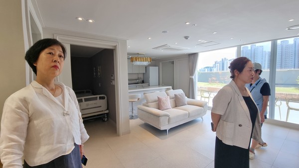 지난 22일 팰리스요양원을 방문한 사회복지특별위 회원들은 어르신들과 인사를 나누고 점심식사에 함께하며 생활 분위기를 체험했고, 부추꽃더클래식너싱홈에서는 고급 시설과 의료·정서지원 시스템을 비교해보는 시간을 가졌다.