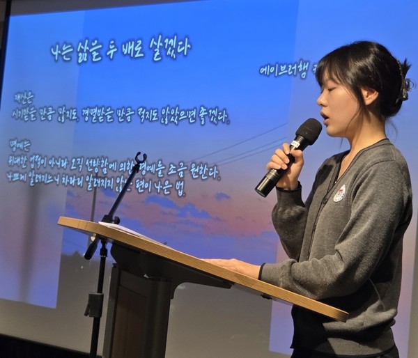 이문숙 교사는 “잔잔하게 흐르는 음악을 배경으로 학생들의 시 낭송하는 목소리가 은은하게 퍼져 청중의 가슴에 울림을 줬다”고 말했다.
