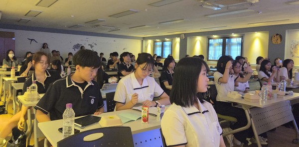 시낭송이 끝난 후엔 황인찬 시인이 ‘이상하고 아름다운 시 읽기’란 주제로 강연을 했다. 학생들은 시를 쓰는 장소, 소재, 주제 등을 시로 녹여내는 과정 등을 질문하며 큰 관심을 보였다. 행사 후에 제출한 감상문에는 ‘시를 예술로 인식하고 감상하겠다’ ‘내년에는 자작시를 써서 발표하겠다’ 등 다양한 소감이 나왔다.