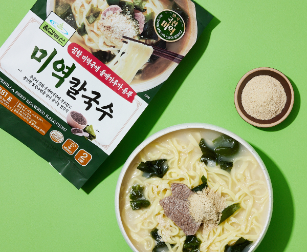 ‘미역칼국수’는 국산 미역을 넣어 국물 맛을 진하게 살린 제품으로, 시원하면서도 깊은 풍미가 특징이다. 여기에 들깻가루를 듬뿍 더해 고소하고 진한 맛을 완성했다. 한 그릇만으로도 집에서 즐기는 진하고 깊은 미역국의 맛과 칼국수의 쫄깃함을 동시에 경험할 수 있다.