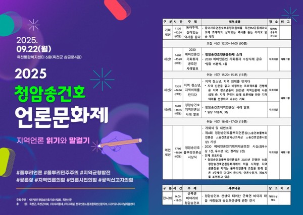 올해 청암송건호언론문화제는 ‘지역언론 읽기와 말걸기’를 주제로 열렸다. 오전 11시 30분 동아투위와 옥천FM이 공동 제작한 라디오 생방송 ‘동아투위, 살아있는 역사를 듣다’로 막을 올렸으며, 오후 세션은 청암송건호언론학교 소개와 함께 ‘2030 예비언론인 기획취재 공모전 사례 발표’로 이어졌다.