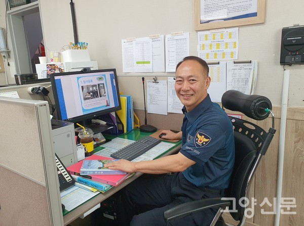 [고양신문] 고양경찰서 관산파출소의 곽동현 경감(2팀장)은 경찰공무원으로 29년째 근무 중이다. 곽 경감은 “아버지가 6·25 참전 유공자셨는데 항상 국가를 위해 약자 편에 서는 정의로운 일을 해야 한다고 하신 말씀 따라 경찰공무원에 도전, 지금까지 성실하게 맡은 임무에 최선을 다하고 있다”고 했다.