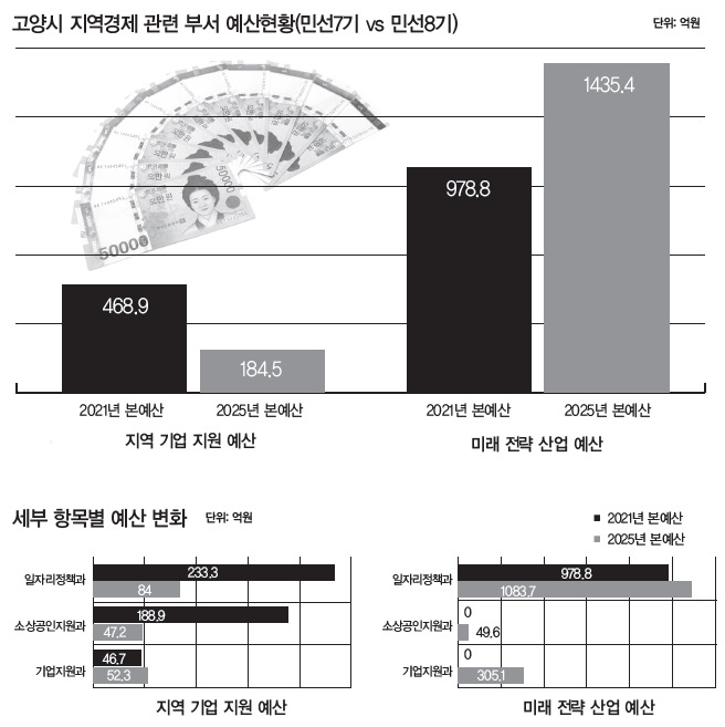 삭감된 내역은 더욱 심각했다. 지역 내 소비를 촉진하던 142억원 규모의 ‘고양페이(지역사랑상품권)’ 발행 지원은 전액 삭감됐고, 소상공인지원과 예산은 75%나 급감했다. ‘고양청년 좋은 일자리 플러스 사업’ ‘신중년 경력활용 일자리사업’ 등 청년과 중장년층의 생계를 책임지던 직접 일자리 사업들도 예산안에서 자취를 감췄다.