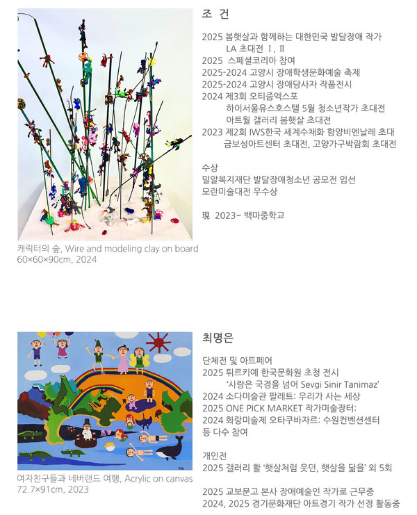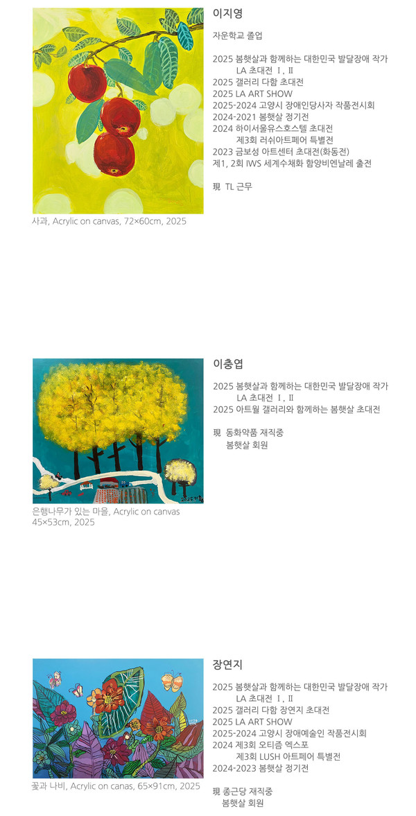 ‘봄햇살’은 예술로 발달장애 청년들이 자존감을 키우고, 지역사회와의 소통을 확장하는 뜻깊은 활동을 이어오고 있다. 이번 전시는 그들의 꿈과 희망을 작품으로 만날 수 있는 자리로, 고양시민들에게 따뜻한 감동을 선사할 것으로 기대된다. 문의는 봄햇살 전미수 대표(010-9015-4374)에게 하면 된다.
