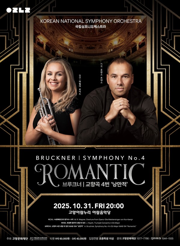 [고양신문] 국립심포니오케스트라의 <브루크너 교향곡 4번 ‘낭만적’> 공연이 오는 31일 고양아람누리 아람음악당에서 열린다. 고양문화재단이 공동주최한 이번 공연에서는 국내 최정상급 국공립 오케스트라인 국립심포니오케스트라가 최고의 지휘자, 연주자들과 함께하는 압도적인 무대를 감상할 수 있다.