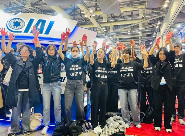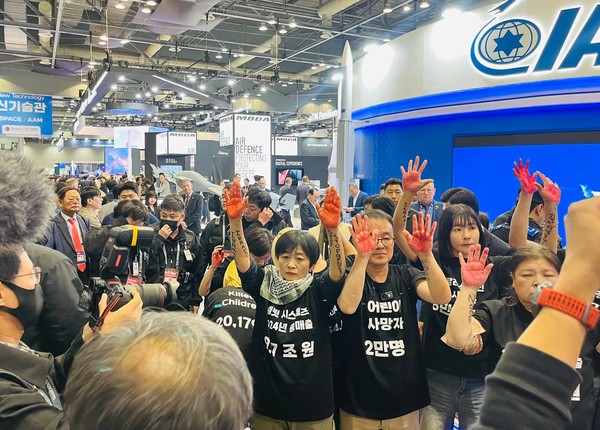 전쟁없는 세상 측은 “ADEX 2025는 10월 17일부터 24일까지 성남 서울공항과 일산 킨텍스에서 진행되며, 국내외 방산기업 550여 개가 참가한 대규모 무기 전시·거래 행사다. 주최 측은 참가 기업의 인권 침해 이력이나 국제법 위반 여부에 대한 사전 심사 기준을 공개하지 않고 있다”고 강하게 비판했다.