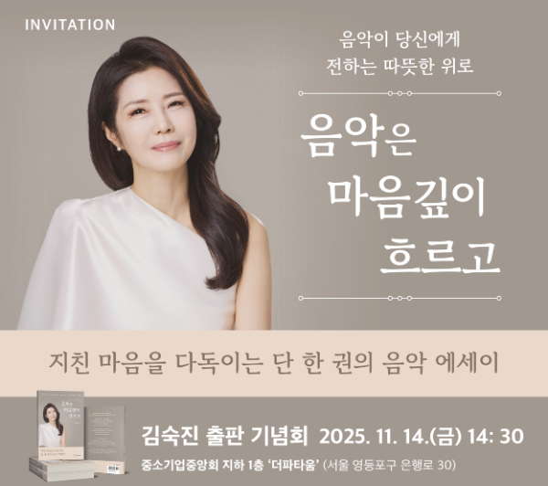 한편, 김 작가는 14일 오후 2시 30분 서울 여의도 중소기업중앙회 더파타움에서 출판기념회도 연다. 기념회에서는 무대에서 전하던 음악의 감동을 글로 이어가며 삶과 예술이 어우러진 또 하나의 ‘치유의 무대’를 선보일 예정이다.