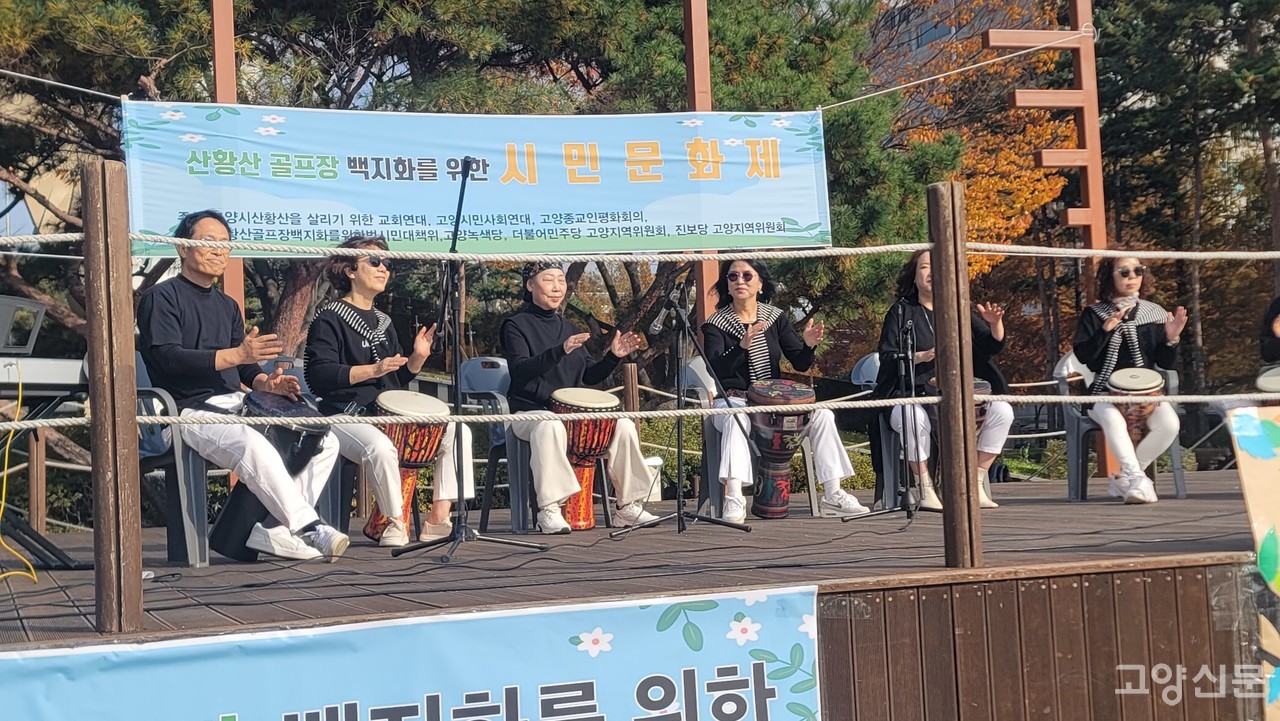 [고양신문] 산황산 일대 골프장 증설 계획에 반대하는 시민들의 목소리가 일산문화광장에 울려 퍼졌다.