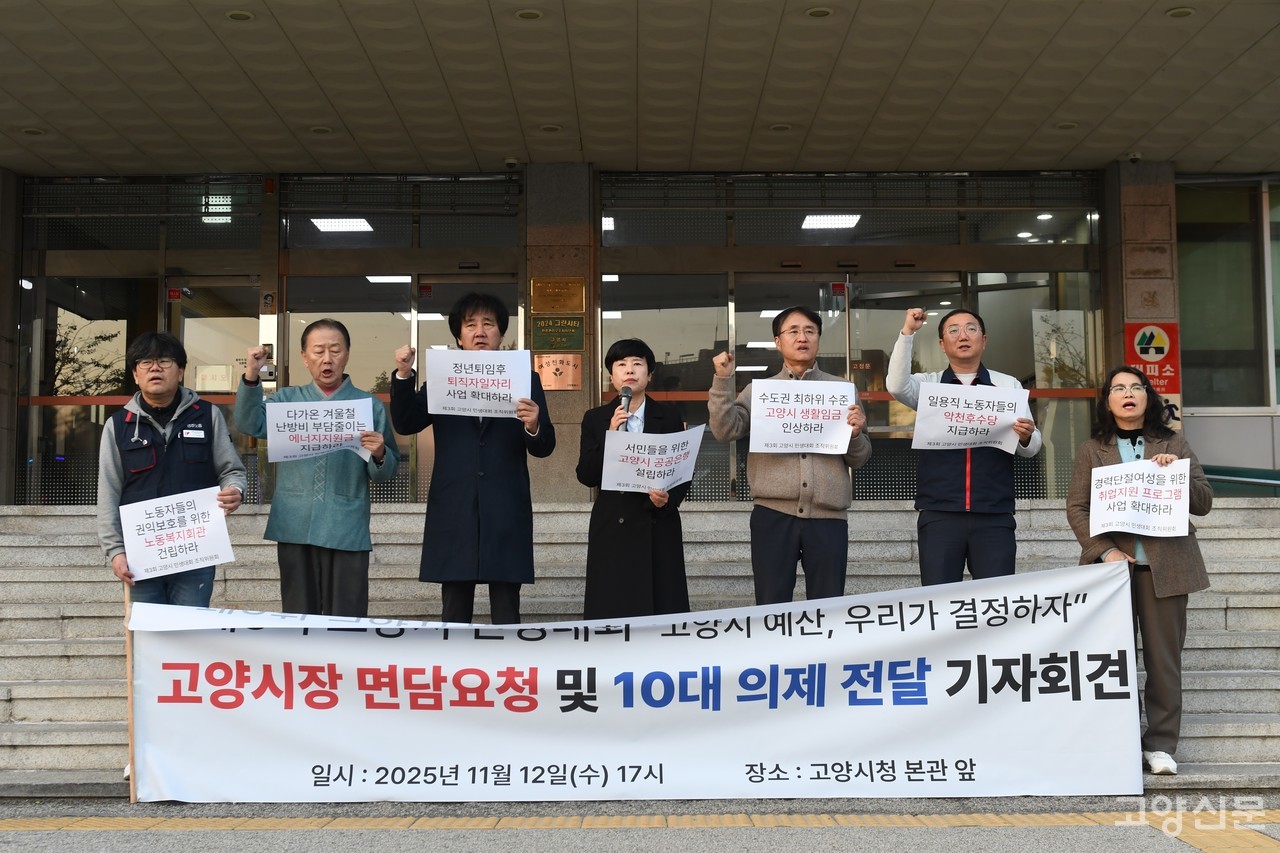 제3회 고양시 민생대회 조직위원회(이하 조직위)가 5225명의 시민 목소리를 모은 '10대 민생 의제'를 지난 12일 이동환 고양시장에게 전달했다. 조직위는 이날 오후 고양시청 앞에서 기자회견을 열고 "이동환 시장은 1회, 2회 대회 요구안을 철저히 외면하고 면담조차 거부했다"고 비판하며, "시민의 절박한 요구가 담긴 10대 의제를 무겁게 받아들이고 2026년 예산에 반영할 것"을 강력히 촉구했다.