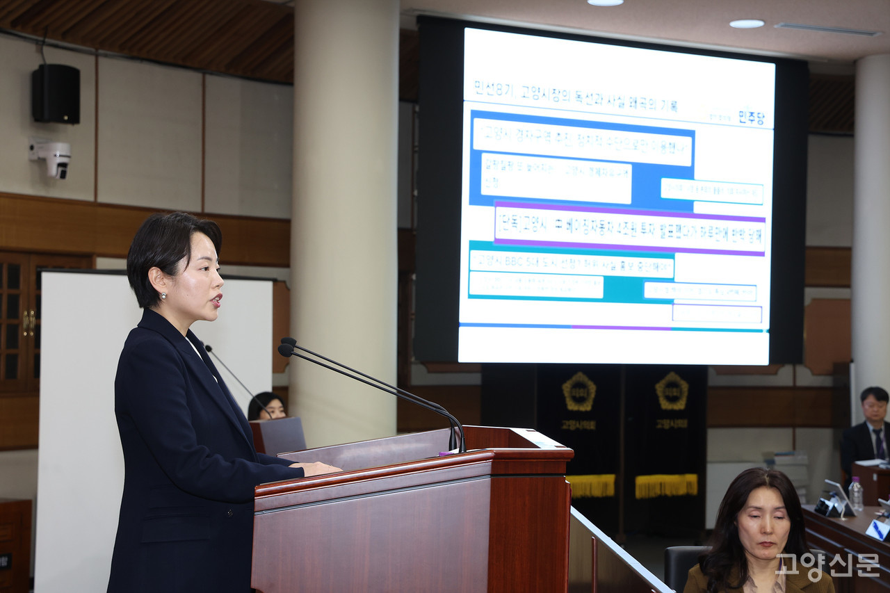 지난 13일 고양시의회 제2차 정례회 시정질문에서 정민경 시의원(능곡동·백석1동, 더불어민주당)은 이동환 시장의 7조1000억원 투자유치 내역을 조목조목 반박하며 실적 부풀리기 의혹을 제기했다. 이 시장은 정 의원의 거듭된 검증 요구에 “모르겠다”고 답하거나 “실무진이 확인했다”며 즉답을 피해, 투자유치 성과 관리가 총체적으로 부실하다는 비판을 자초했다.