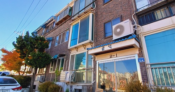 그런데 잘 찾아보면 과거 금석산이 있었다는 기억을 눈으로 확인할 수 있는 흔적이 또 하나 있다. 한 주민이 알려준 지점을 찾아가 보니 벽돌로 쌓은 3층 연립주택 현관에 ‘금석’이라는 글씨가 선명했다. 검정 페인트로 투박하게 쓴 두 글자를 만나는 순간, 앞서 능곡 사뫼언덕의 흔적을 ‘사뫼순대국’ 간판에서 발견했을 때처럼 짜릿한 반가움을 느꼈다. 내가 구도심 골목나들이를 발품파는 만큼 보상이 돌아오는 ‘보물찾기’라고 말하는 이유다.