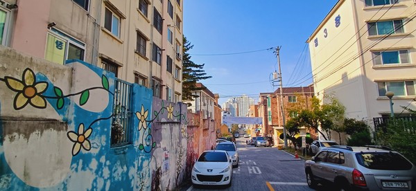 집들이 위압적이지 않으니 발길도 느긋하다. 다양한 형태로 이어진 계단, 현관에 놓인 화분들, 틈새가 비좁아 키만 훌쩍 키운 나무들, 등나무 그늘의 평상, 색이 예쁘게 바랜 벽화, 놀이터에 널어놓은 붉은 고추 등 휴먼스케일을 실감할 수 있는 풍경들이 나들이꾼의 시야를 편안하게 한다.